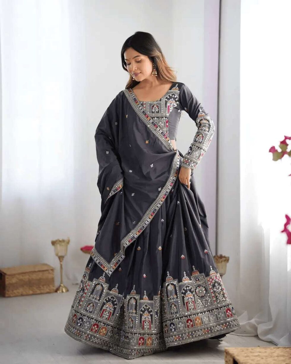 Women’s Crepe Silk Sequence Embroidery and Zari Work Rajsthani Lehenga Choli with Dupatta